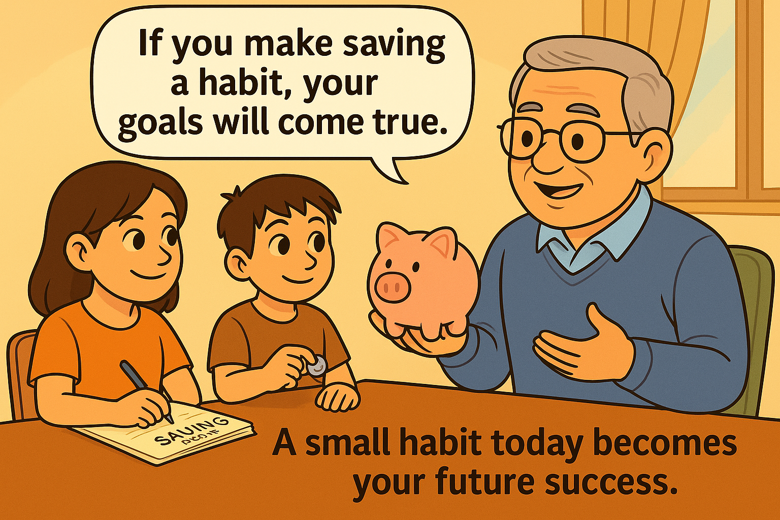 🧓 Grandpa: If you make saving a habit, your goals will come true.