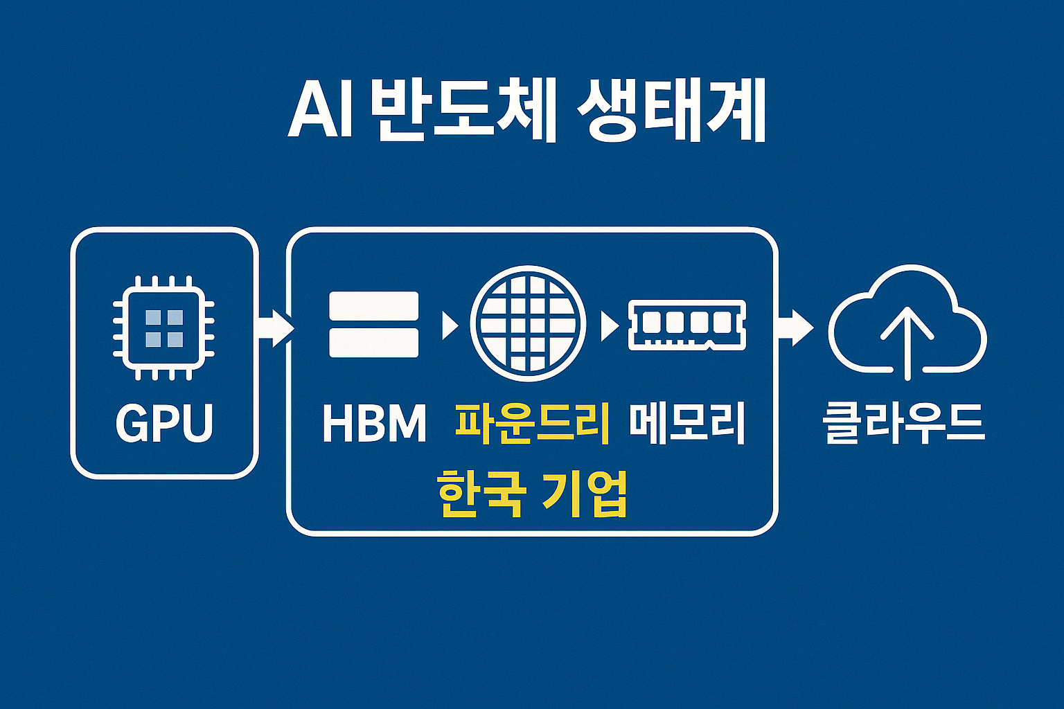 [그림 1] GPU → HBM → 파운드리 → 메모리 → 클라우드로 이어지는 AI 반도체 생태계와 한국 기업의 위치