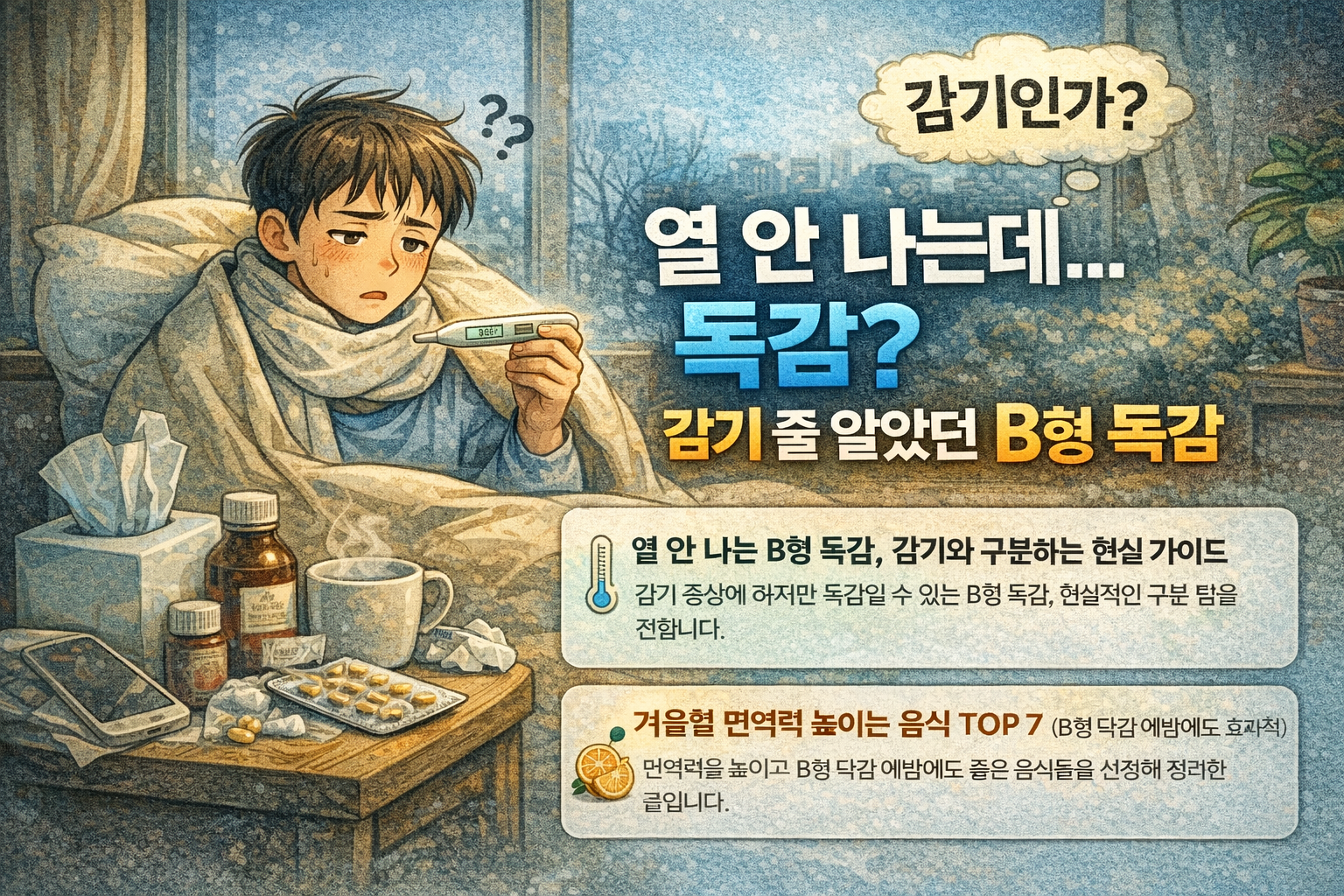 → 열이 없어 감기로 오해하기 쉬운 B형 독감 실제 사례를 바탕으로 정리한 글입니다.