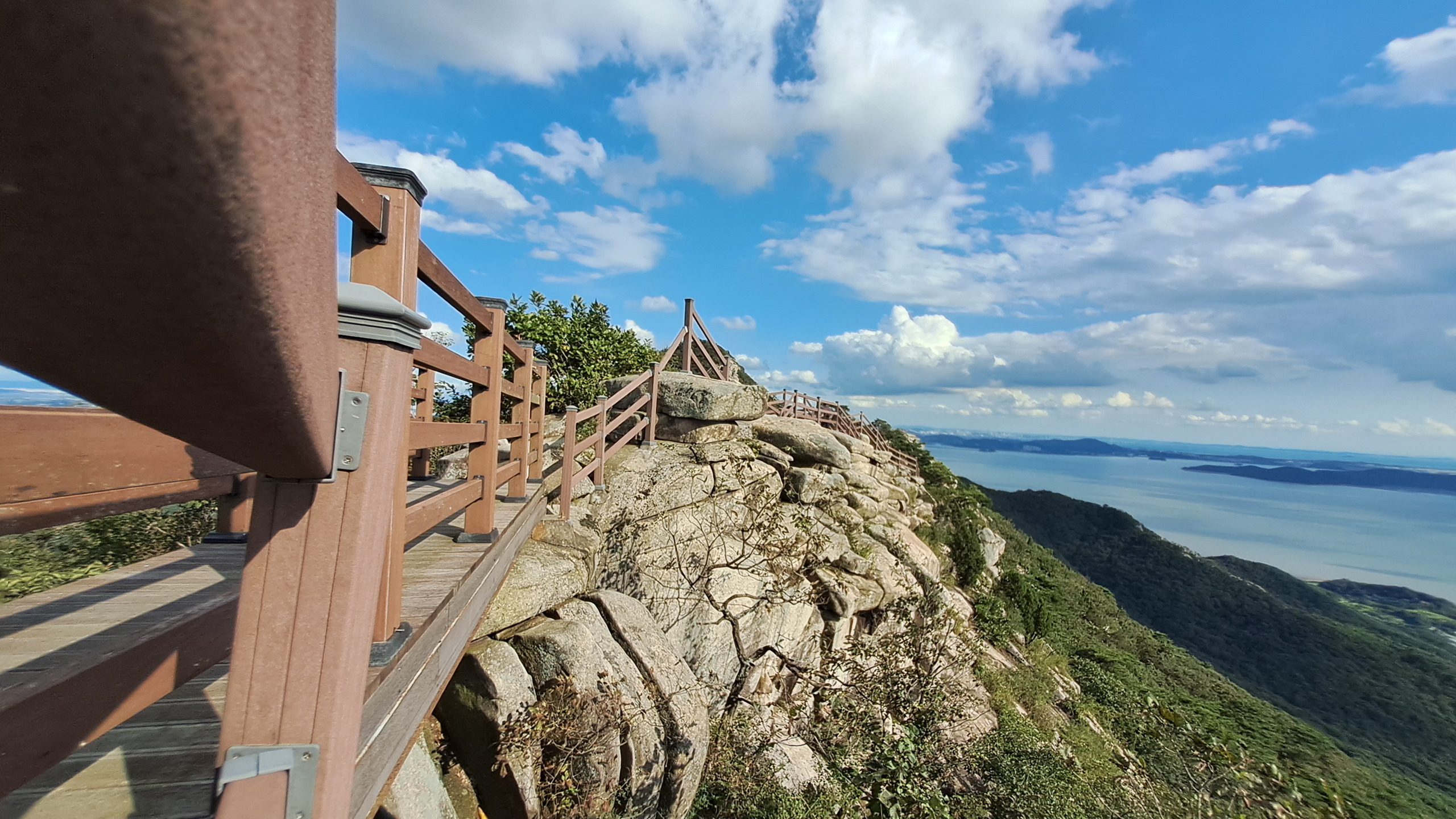 능선에 오르자 암벽으로 이어진 능선(체감 1km 내외)이 펼쳐집니다. 바위 틈을 통과하거나, 때로는 짧게 기어오르는 동작이 필요해 모험심을 자극합니다. 산행 중 50대 중반 부부와 아들이 함께한 가족팀과 앞서거니 뒤서거니 하다가, 능선 중반부터는 저희와 간격이 벌어지더군요.
